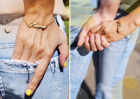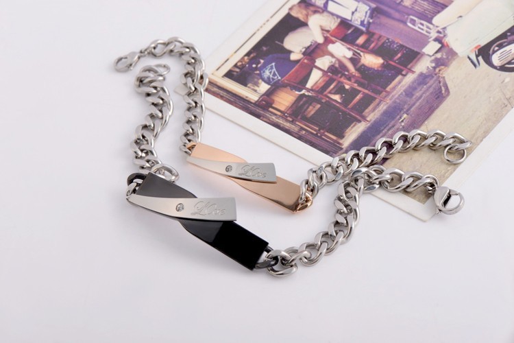 A perfect solution for lovers will be paired nominal bracelets. They may contain your lover's name or your names together.