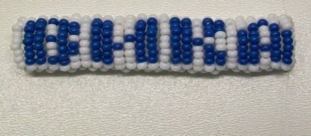When you are finished with the first row (according to the size of your wrist), fasten the fishing line and add the blue beads with a new piece of fishing line.