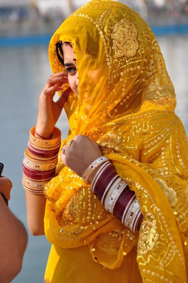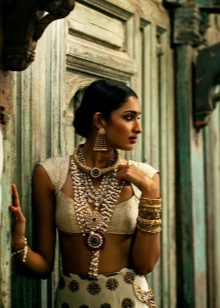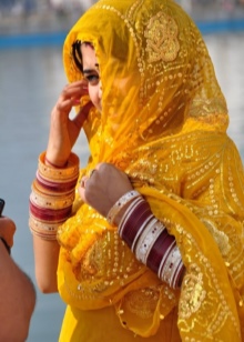 In Punjab, girls, during the year after the wedding, wear ivory accessories. In Rajasthan, women cover the whole arm with gold bracelets, from the wrist to the forearm. In a similar way, jewelry is worn throughout life or while the spouse is alive.