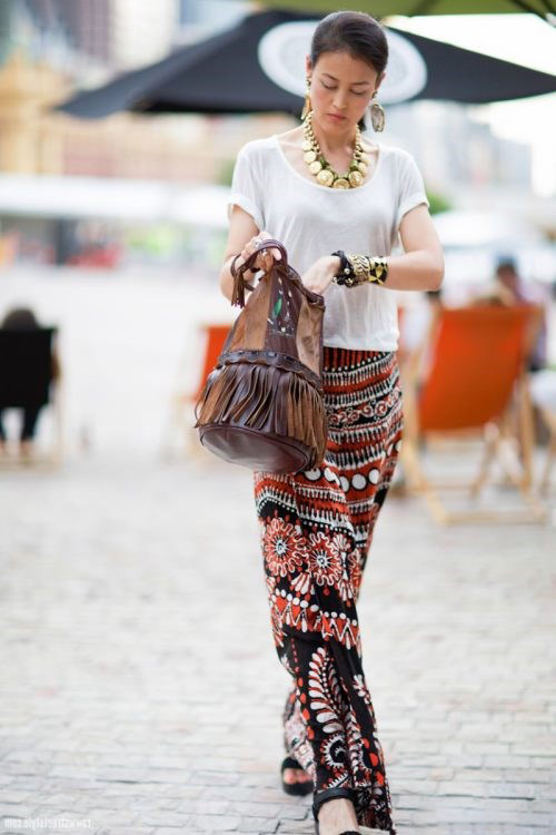 You can give preference to wide models or put on several thin rims at the same time, as well as complement the image with a necklace of a similar pattern.