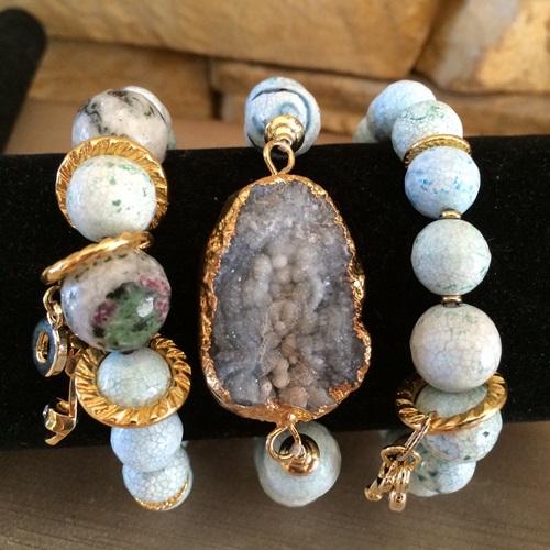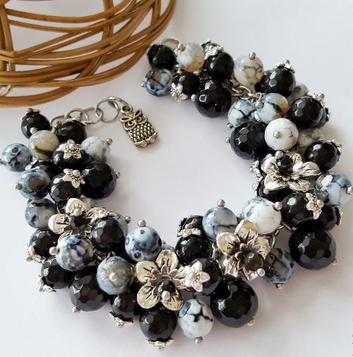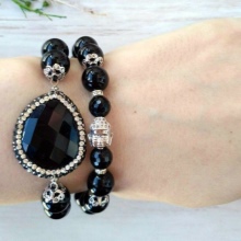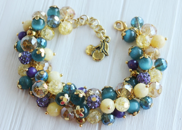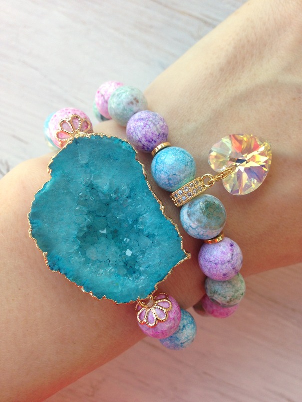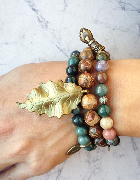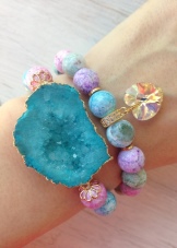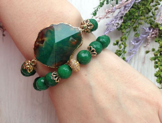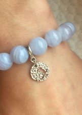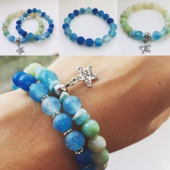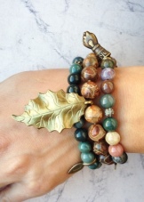 Agate bracelets look very noble, if you learn how to properly combine them with clothes. The best of these products fit the classic and official business style. Jewelry with small pebbles can be worn under a strict shirt or blouse, they look great with a discreet trouser suit. Complete with earrings or beads, the agate bracelet will be a great addition to a strict pencil skirt, to a sheath dress, and also to narrowed trousers.