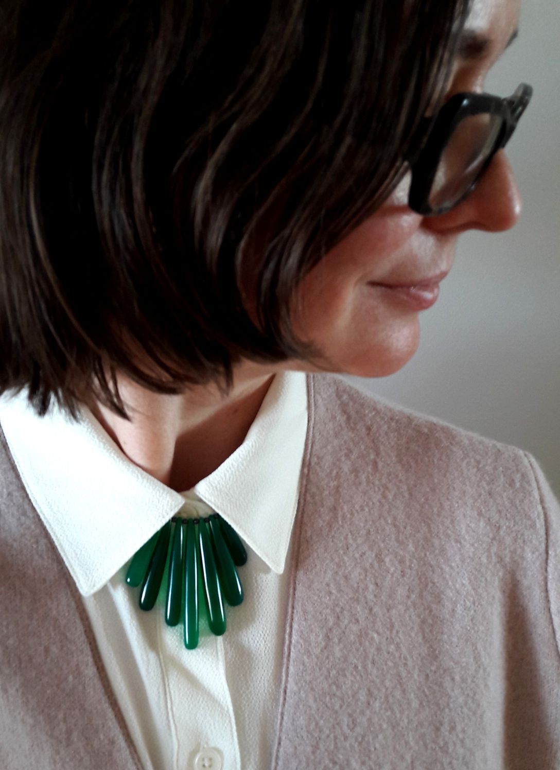Spacious clothes, long skirts, baggy pants are successfully combined with a set of different shades of agate.