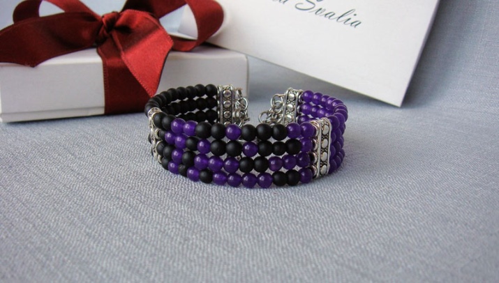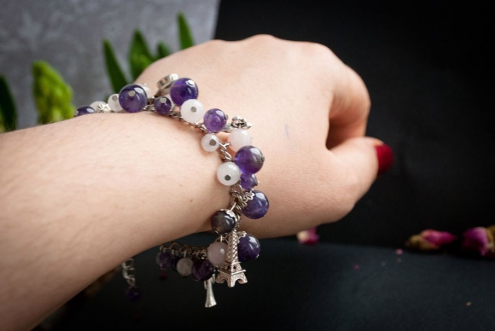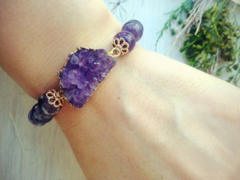 In everyday life, wearing an amethyst bracelet is also quite possible. Combine your decoration with monotonous shirts, tunics, jeans, light summer sundresses. Stylists recommend to choose clothes so that it lacked bright and saturated colors. Wear outfits in light gray, blue, lilac, black, white, deep green.