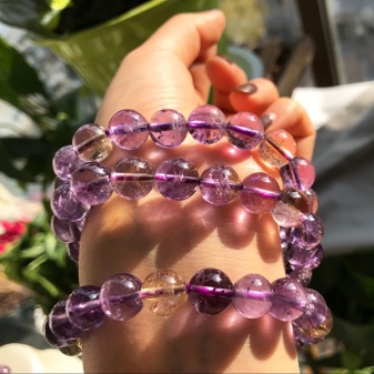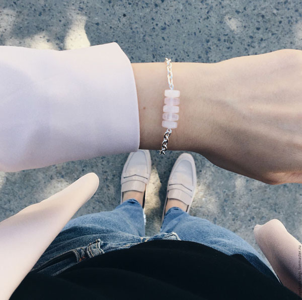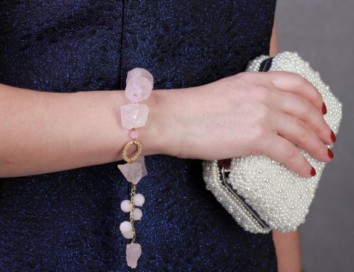 Pink amethyst (or quartz) is delicate and subtle. Crystals of this color are the best fit gentle girls who are prone to romance. In bracelets this type of amethyst can be combined with white or yellow gold, silver and platinum.