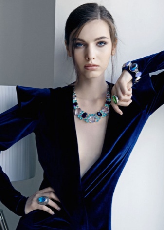 Since many girls select jewels in purple and lilac shades, it is worth thinking about this color of the whole image. You can wear a dress of deep purple color or delicate lilac - with a similar color stone looks just stunning.