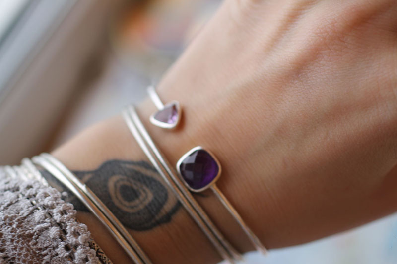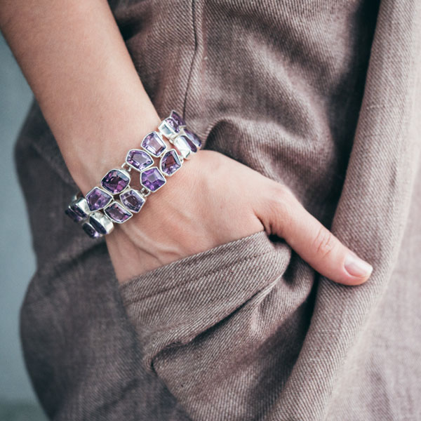 - Silver bracelets with amethyst are also fresh.