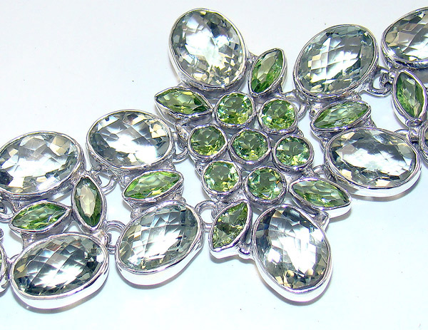 Green amethyst looks very nice, but you can meet him extremely rarely. The gamut of colors of such a stone begins from the light mint and ends almost emerald.