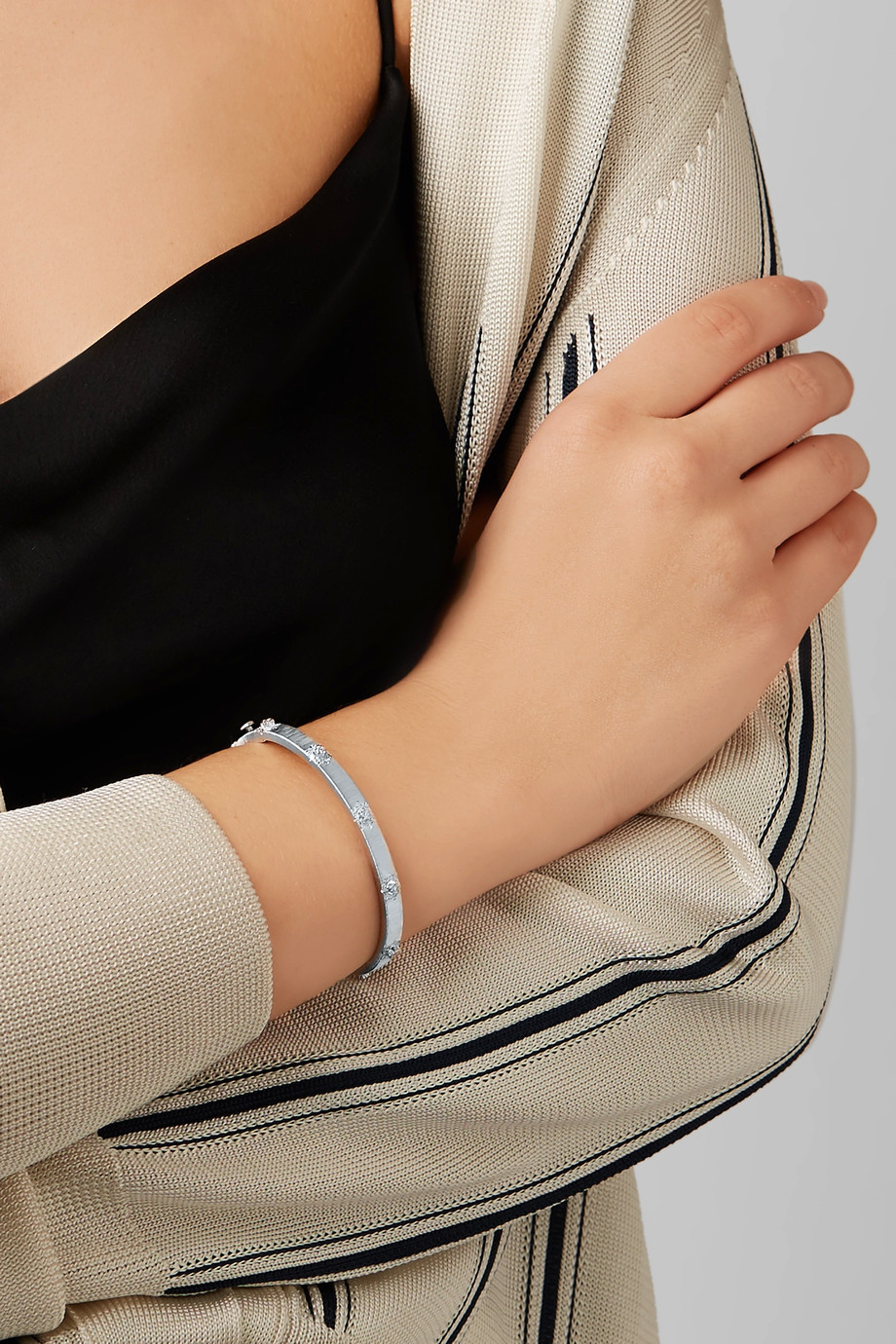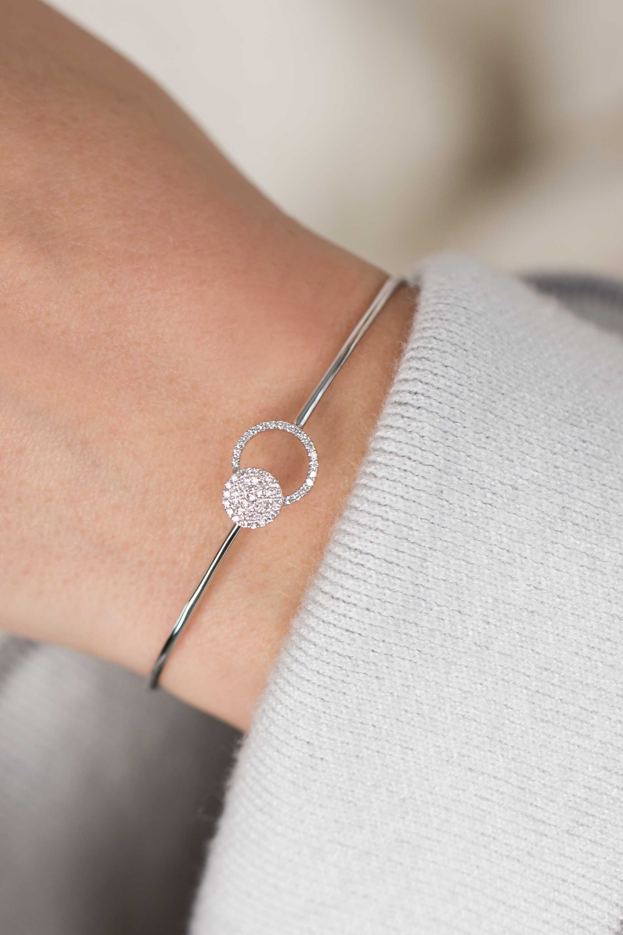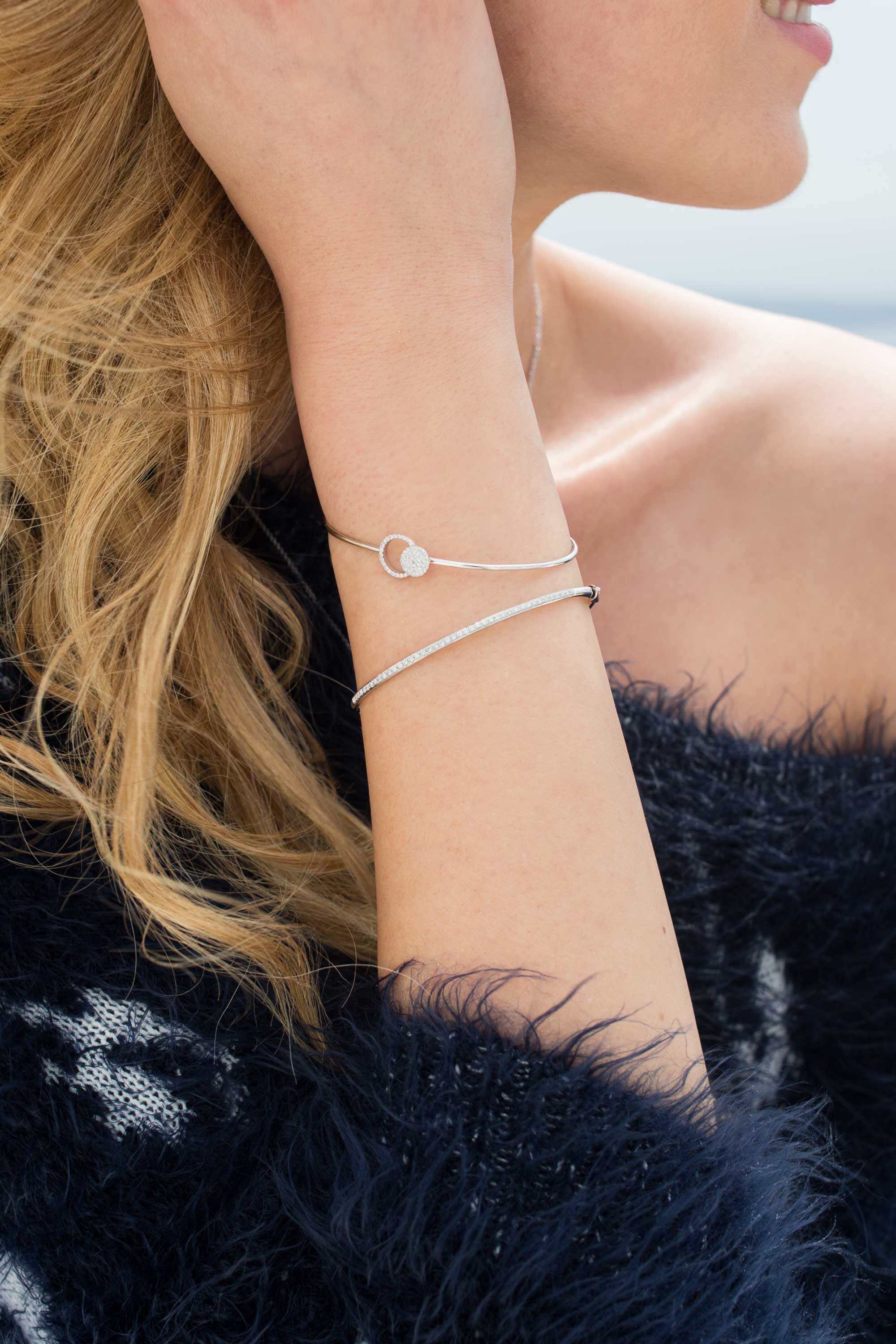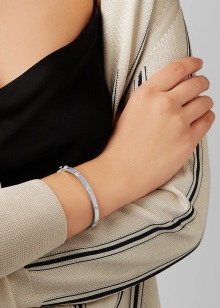 Hard diamond bracelets are considered the most versatile and convenient. Their convenience is that they are suitable for any image (be it business, casual, festive, bright, winter, summer clothes). In addition, you can adjust the length of such jewelry, as hard bracelets often have special clasps for convenience. You can add this product with any accessories: from the rings to the gold brooches.