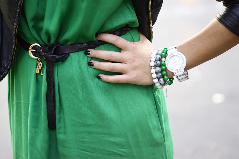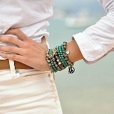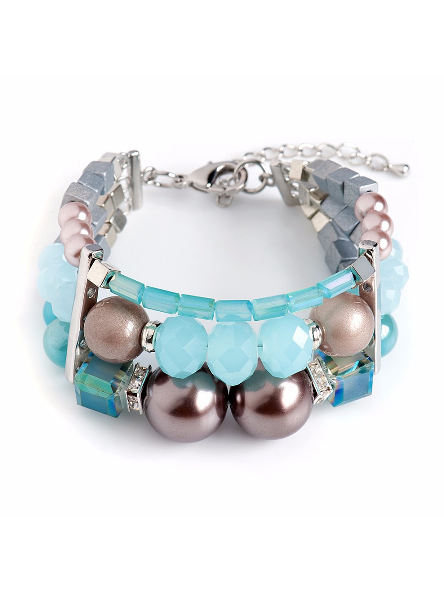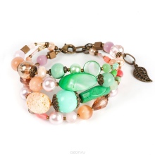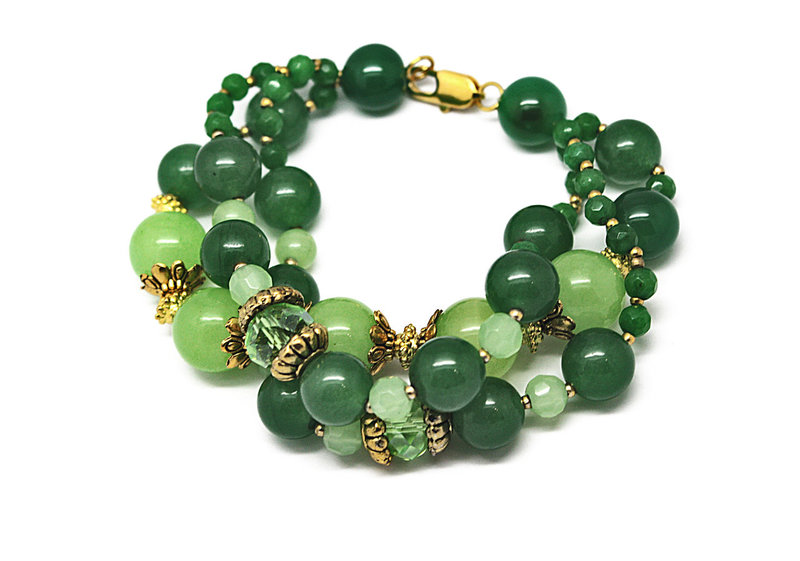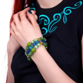 A stylish multi-row bracelet made from green, blue beads perfectly complements any clothing - for example, a black embroidered top and jeans / pants / skirt. Spectacular decoration makes the image more vivid and original.