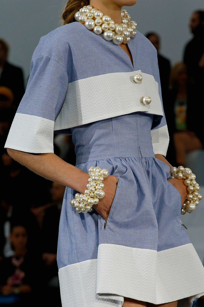 Several white bracelets of various shapes instantly transform even the most common office image. First, layering is one of the trends of the season. Secondly, the bracelets are worn right on the black turtleneck. They further enhance the contrast between colors.