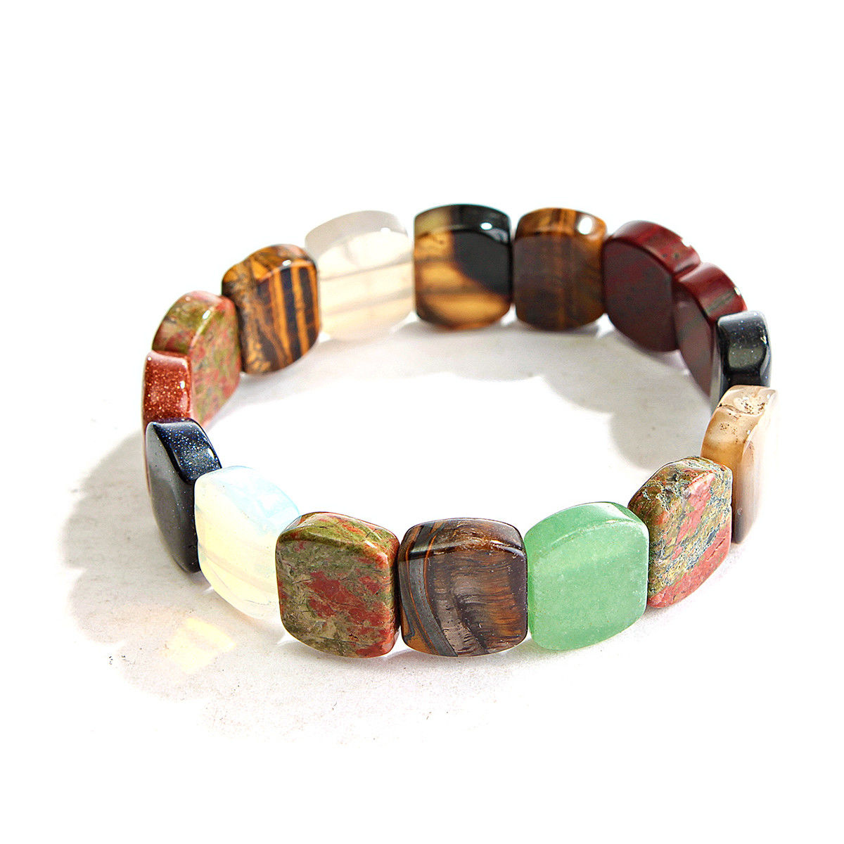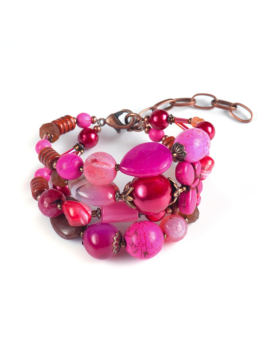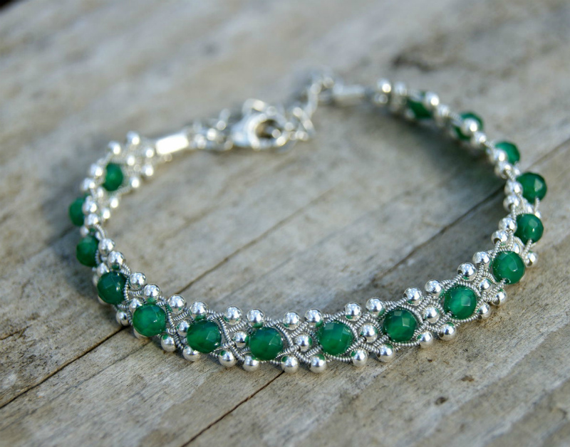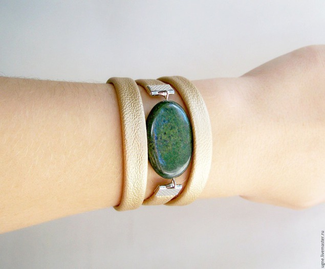 Semiprecious stones are equally popular. Bracelets made of onyx, jasper, opal, amethyst, tourmaline, chrysoprase and other stones look very nice (largely due to the heterogeneous structure, interesting color of the mineral).