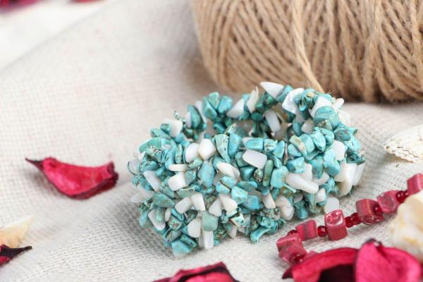One of the most common, inexpensive and practical options is a bracelet with an elastic band. This is a very light, feminine decoration, a beautiful summer casual accessory. To create it, transparent and matte pebbles of various shapes and sizes are used. They can be monophonic or alternate with stones of contrasting colors.