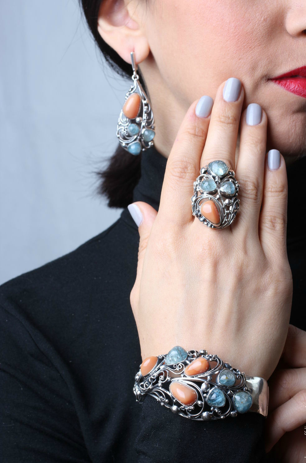 Women and girls who prefer the sea colors and shades of the first greenery should turn their attention to jewelry with topazes, chrysoprase or aquamarine.