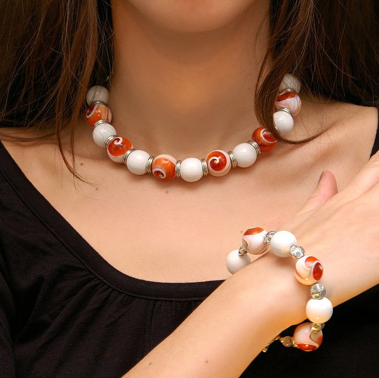 Minerals are used not only in jewelry. Jewelry with stones has always been and remains at the peak of popularity. This is especially true of high quality products. Such accessories imitate expensive items with precious stones very precisely. For their manufacture topazes, phianites, chrysoprase, citrines, quartz, aventurine, garnet, amethyst are used. Jewelery made of blood-red carnel in a frame of silver metal look luxurious. Unusual and original multi-tiered bracelets made of coral.