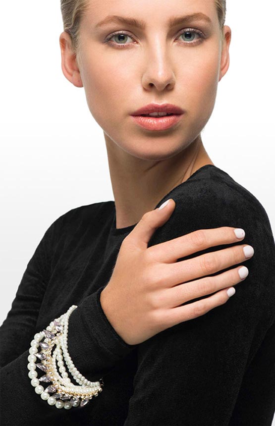 Jewels with large stones look perfect on wide, full wrists. A bright and large crystal looks more harmonious in an evening look, but this is not a prerequisite.