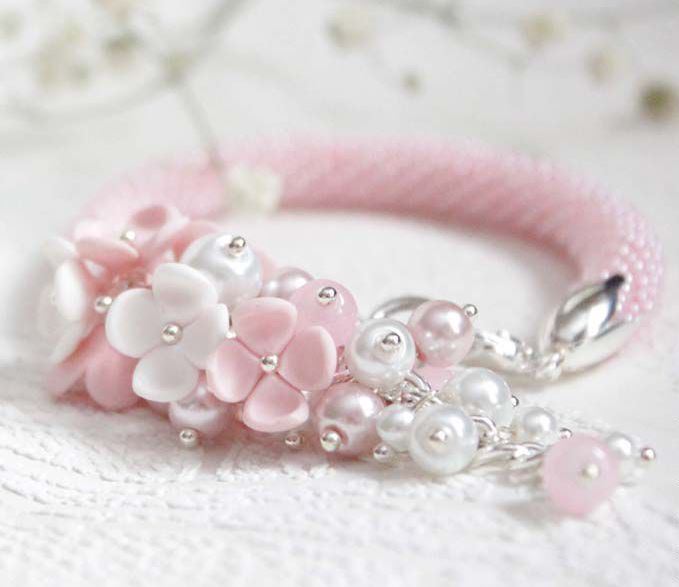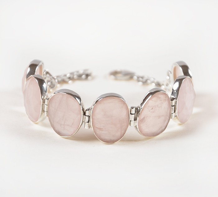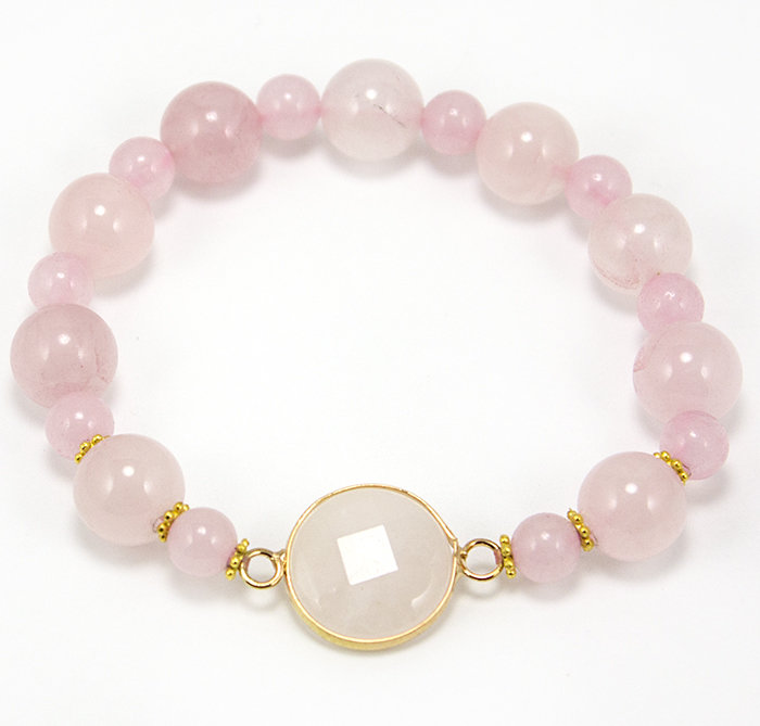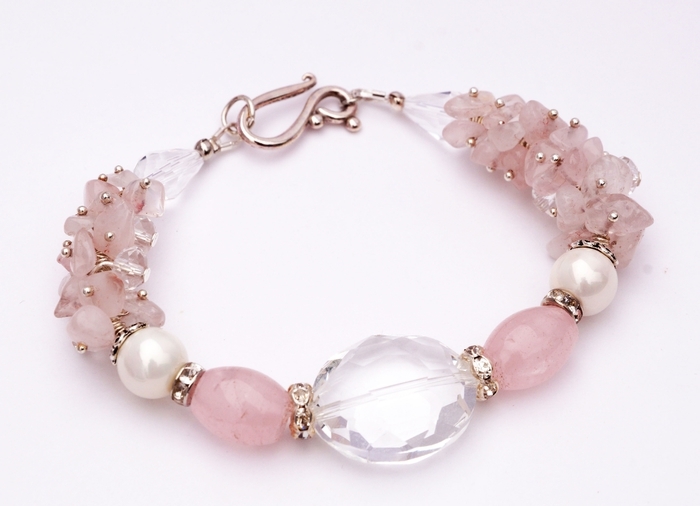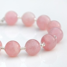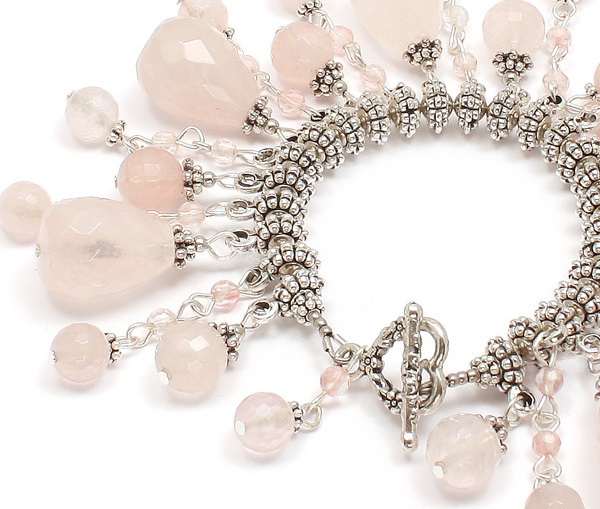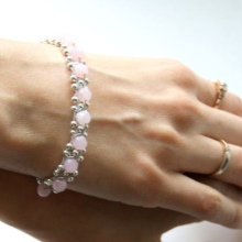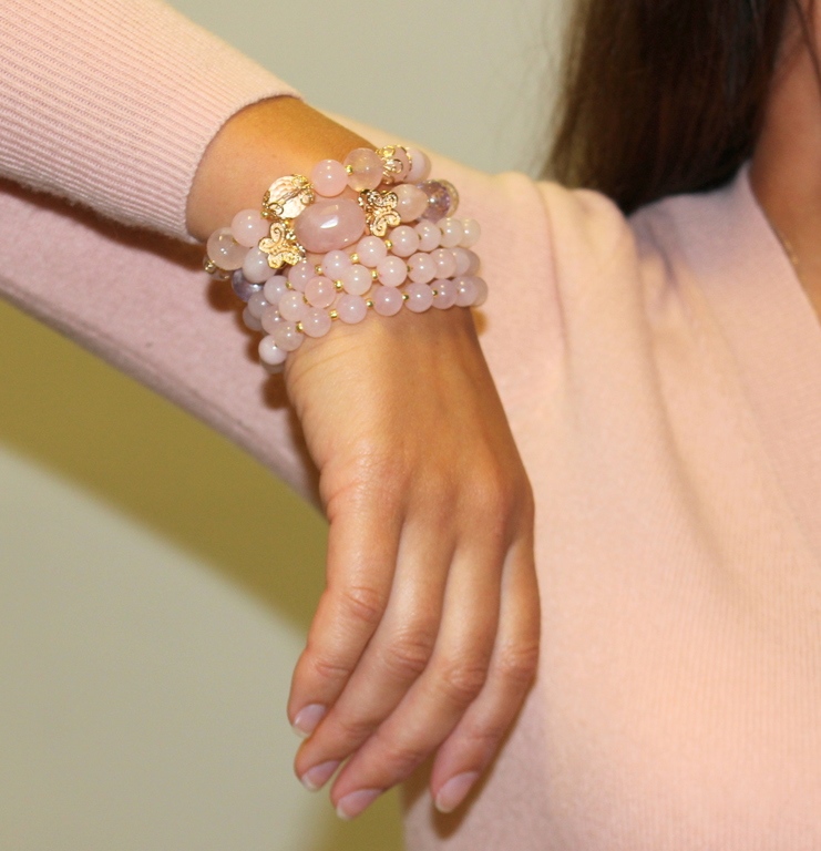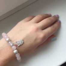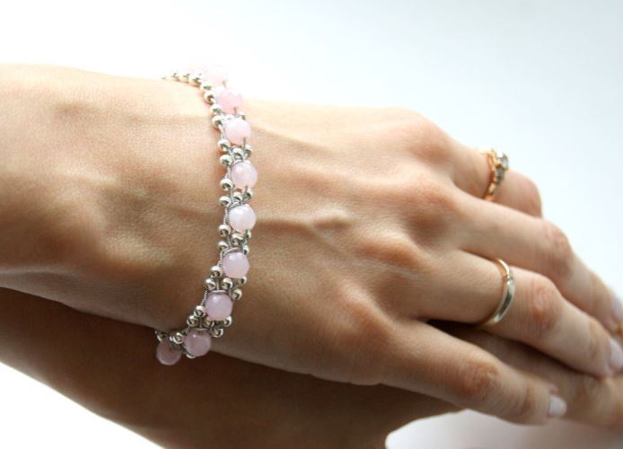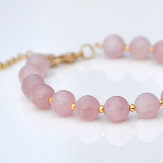 The bracelet with pink quartz will be an ideal adornment for girls with the “summer” color type, especially for owners of a la platinum blond hair.