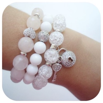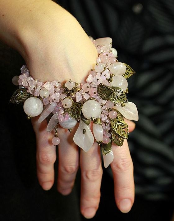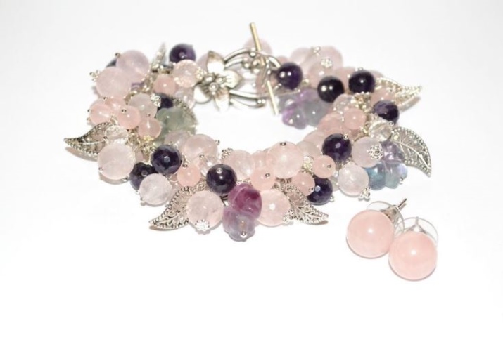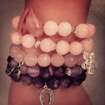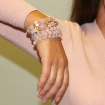 Young ladies are advised to wear elegant quartz bracelets in addition to the ring or pendant. Due to their milky-pink color, these sets look fresh and gentle, emphasize the beauty of the girl and do not make the image heavier.