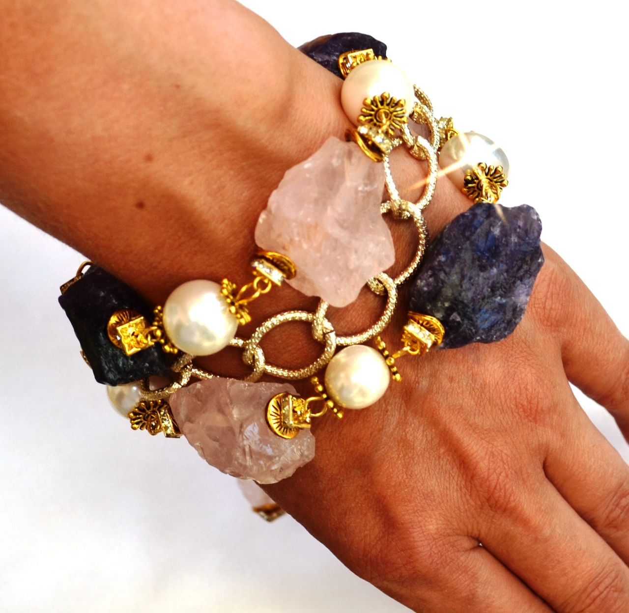 Bracelets with translucent and transparent stones are usually worn when they are released “into the light”. As an addition to them, cubic zirconia, rhinestone and chalcedony are often used.