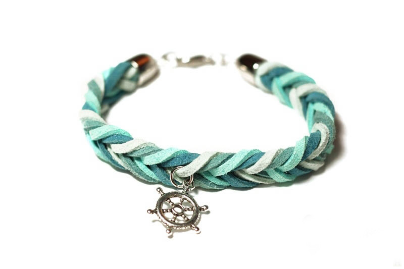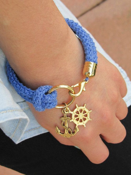 It is impossible to ignore bracelets with pendants. They look original and unusual. A wide variety of pendants allows you to select items for any subject. Decorations in nautical style, such as pendants in the form of an anchor or steering wheel, look impressive.