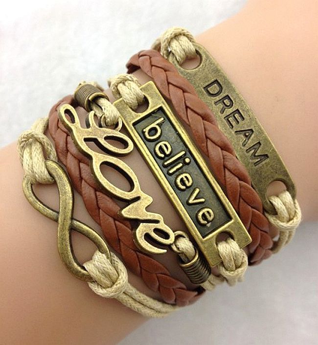 Many girls choose a metal pendant with an infinity sign or an inscription, for example, “love”. Original pendants will help create an unforgettable bracelet.