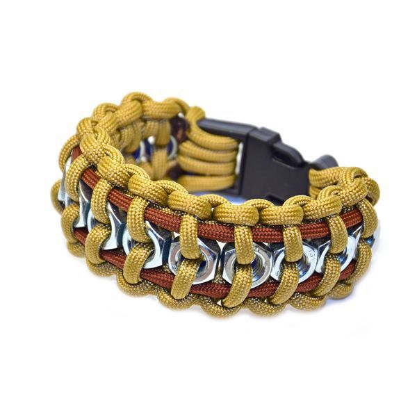 To create a strong and unusual model, it is enough to stock up not only with laces, but also nuts. Such decoration looks bright, massive and fashionable. Bracelet with nuts will add an image of audacity and rebellion.