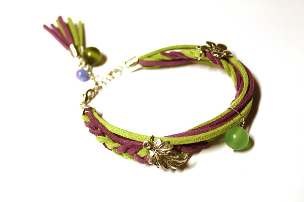 - The bracelet can be made of suede lace, which has a beautiful velvet surface and is characterized by durability and practicality. Manufacturers offer a wide range of colors. You can find both classic colors and bright and saturated colors.
