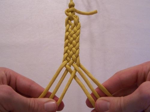Newcomers to needlework can create a fashionable bracelet from one cord. The process of weaving does not require special skills and skill. Just take one lace and begin to weave according to the scheme.