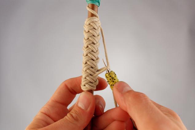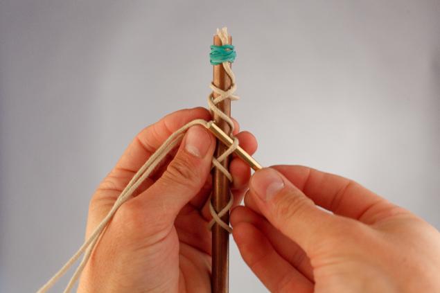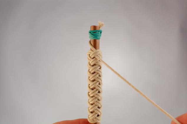 The bracelet made with the “Turkish head” knot looks spectacular. He weaves around the cylinder, which must match the size of his wrist.