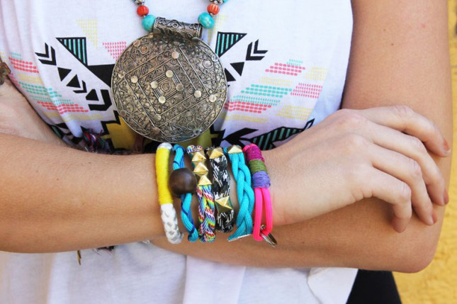 You can create a stylish decoration for your every outfit. Bracelets of black or brown laces are beautifully combined with denim shorts and a light shirt.