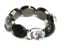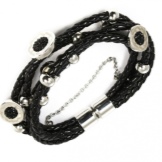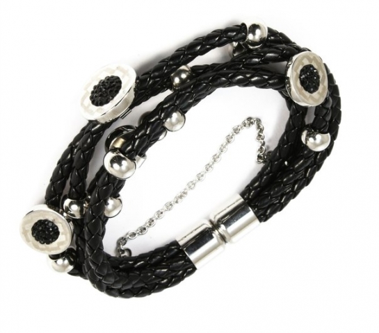 Against the background of steel, turquoise, onyx and garnet look great. Bracelets with such inserts can be purchased for a very reasonable price that does not hit your wallet. They will not look cheap or boring, so today women of all ages are increasingly turning to them.