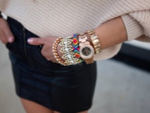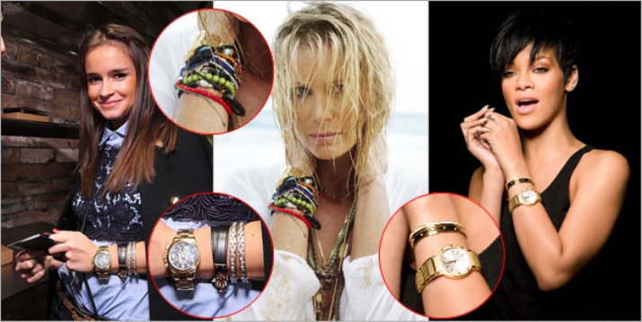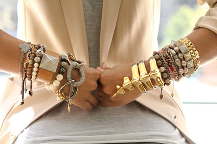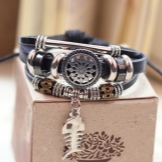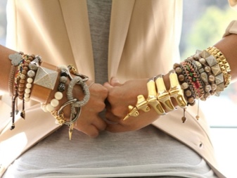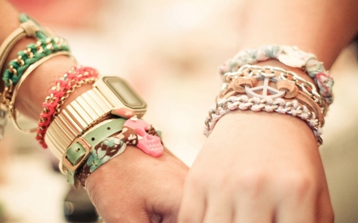 Many young ladies get thin bracelets and wear them in tandem with other accessories. For example, it may be a set consisting of a steel bracelet, watch and woven leather jewelry. All products can be of various sizes, shapes, colors and shades. Such options are the trend of the last seasons.