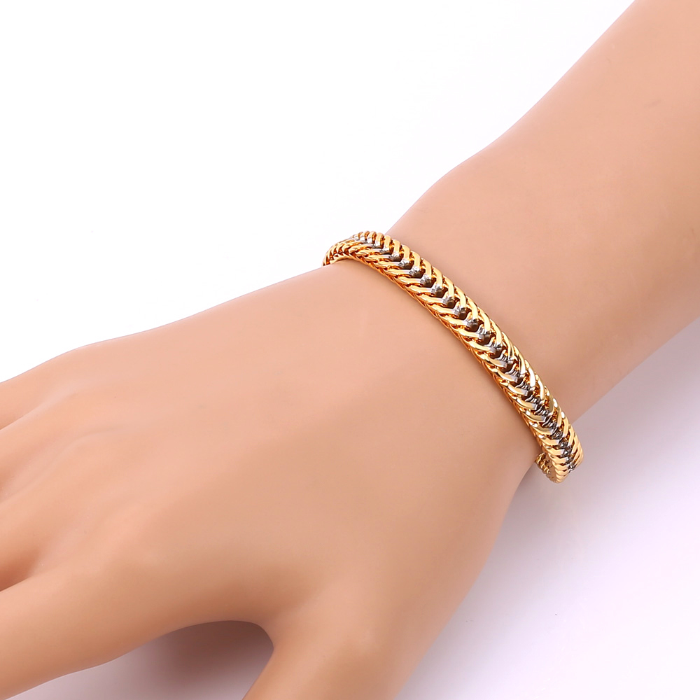 - To permanent classics can be attributed chain bracelets. They represent an ordinary segment of a chain of a certain size. For such products most often used types of weaving: Bismarck, anchor, armor-clad or double lozenge. These bracelets are considered among the most reliable, but many consumers find them slightly outdated.