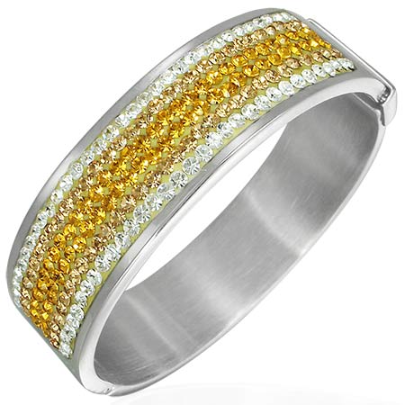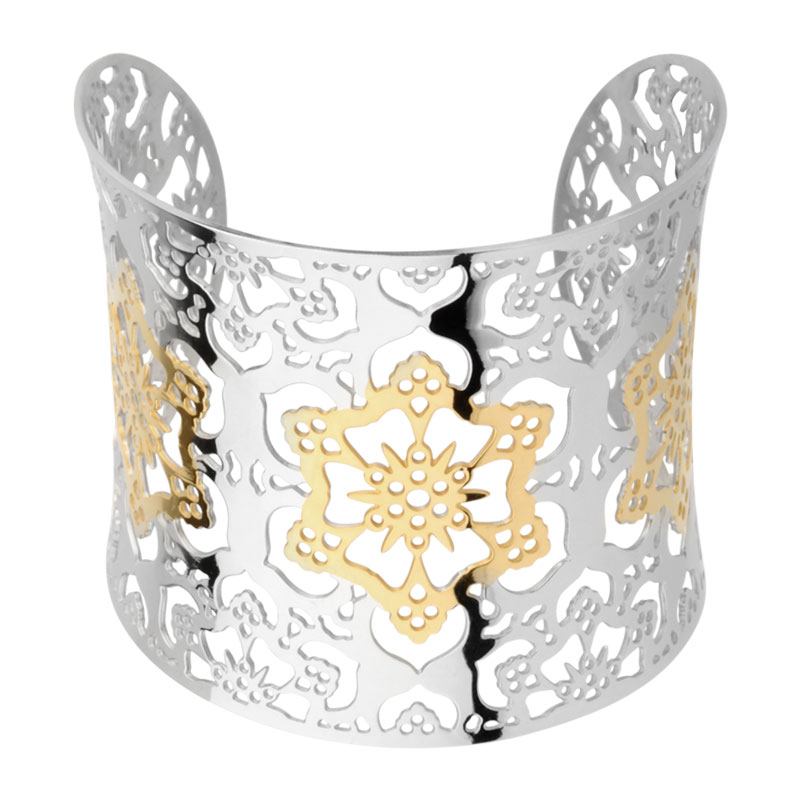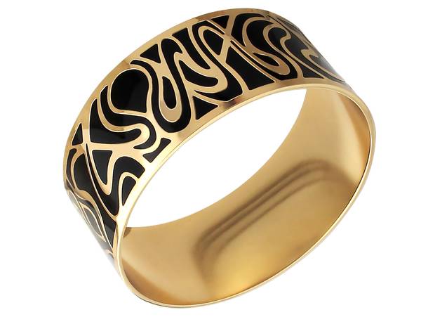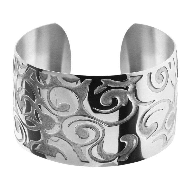 - One of the most convenient is a spring bracelet made of steel. Outwardly, such an accessory is more like a cut and wide ring. Such specimens are often decorated with interlacing patterns, enamel patterns or figure-carved details.