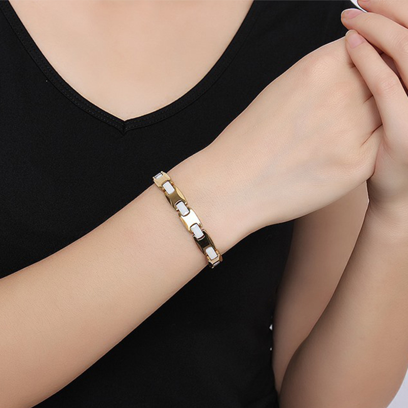 Bracelets made from this alloy are distinguished by their attractive and expensive appearance. Otherwise, this steel is called surgical. It is highly durable, so not only women's bracelets are made of it, but also thin chains.