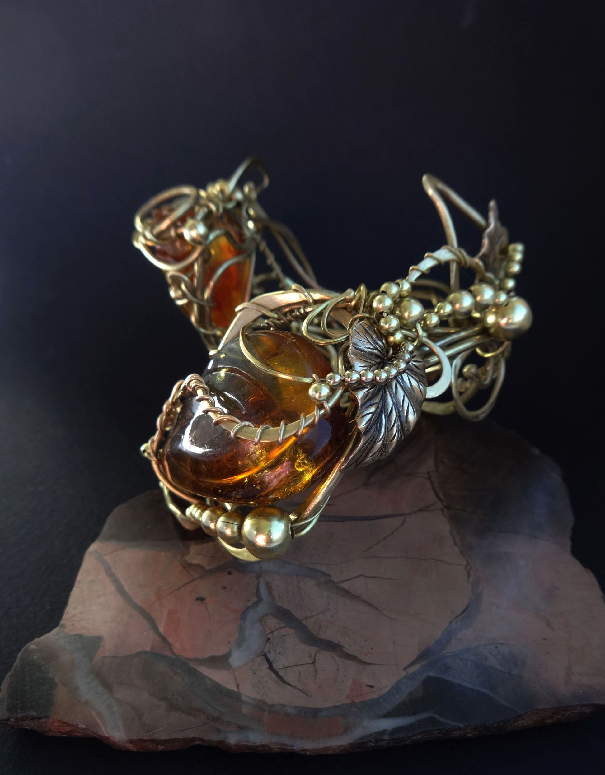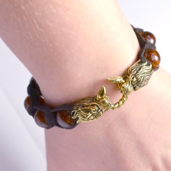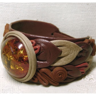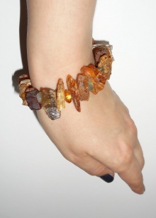 Those who appreciate simplicity, we can recommend to pay attention to the leather bracelets. Most of them are wide, with a big stone, they will emphasize the taste of their owner. The combination of black and gold color not only evokes thoughts about the autumn forest, but also improves mood. Bracelets made of raw amber are quite effective and provide space for the most daring solutions. And faceted products, facing the sun, sparkle and shimmer with all the colors of the rainbow.