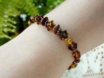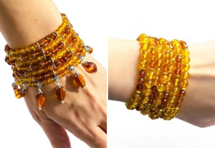 There are a huge number of models of amber bracelets, ranging from the simplest, and ending with real works of art. When making jewelery, jewelers can select any shape and size of stones. Products from small rounded elements are well suited for slender girls with thin wrists. On the full ladies will look great massive bracelets with large stones.