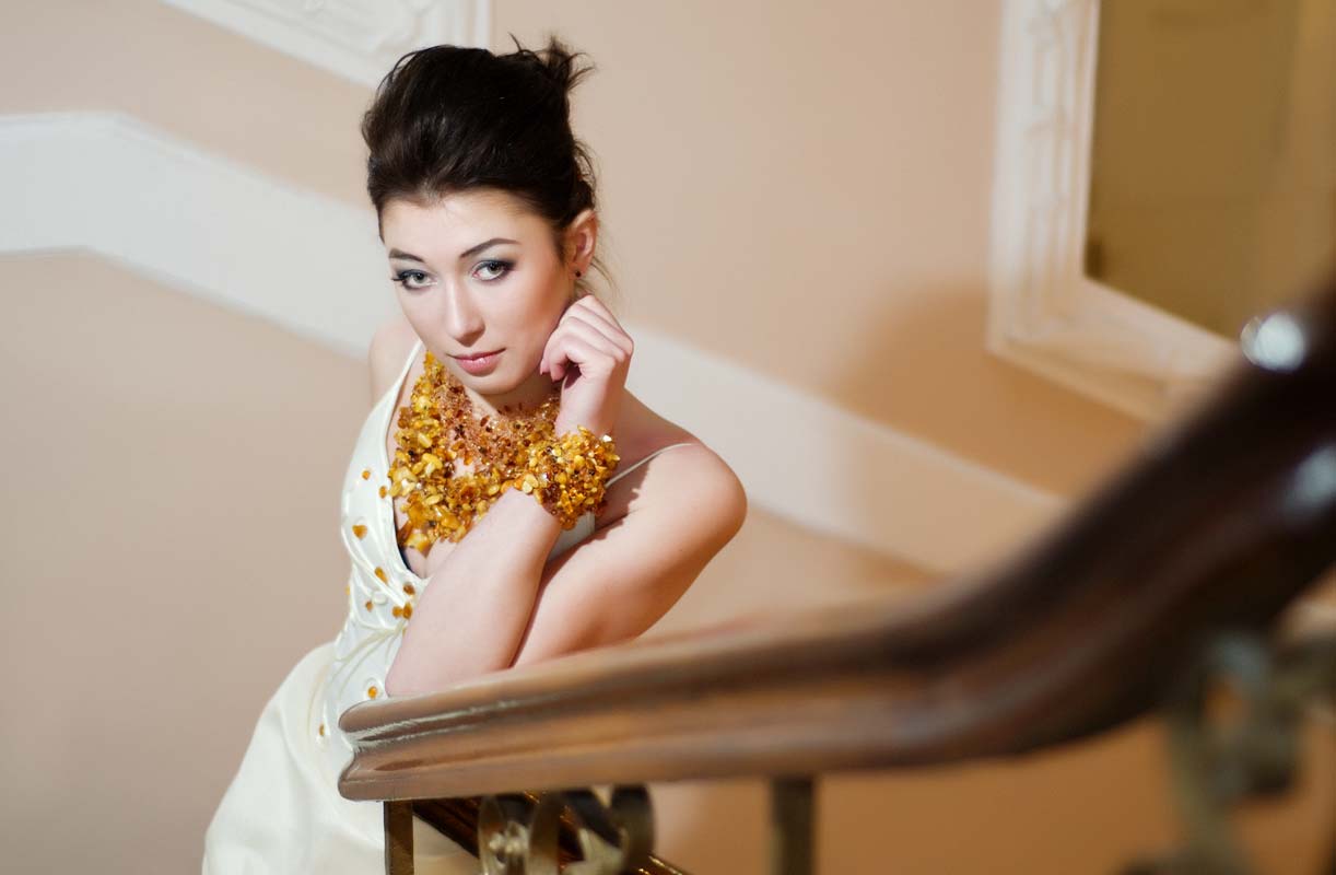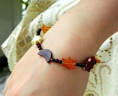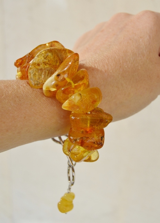 When choosing a product, you should also focus on your own color type. A spring girl with blond or reddish hair and big blue eyes can pick up a pebble of a deep yellow tone. Autumn brown-eyed ladies will look good with gold or brownish bracelets. Winter girls with fair skin and dark hair can recommend the rarest black and green mineral. And light-eyed natures with a color type summer will perfectly suit amber of a white shade.