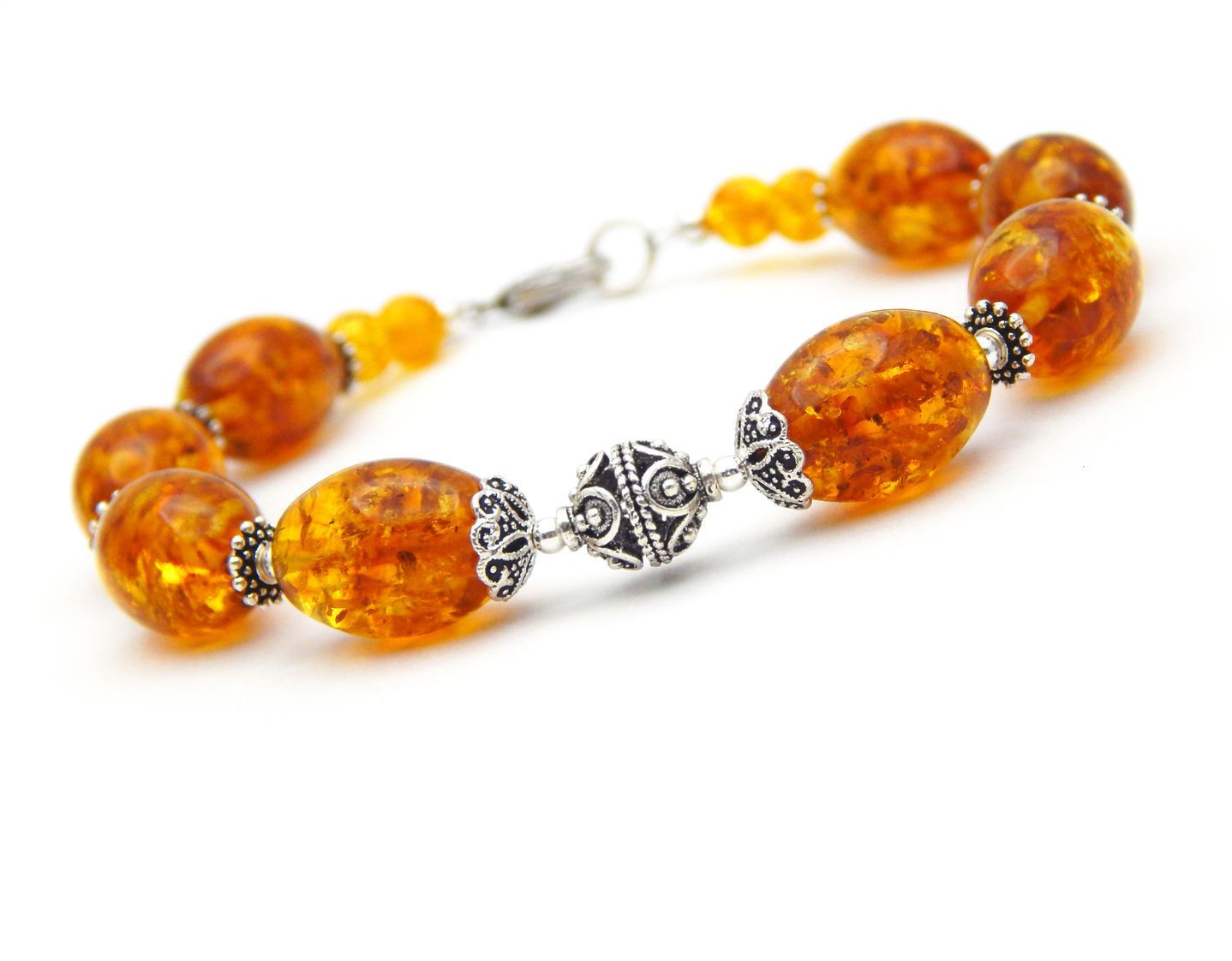 Amber bracelet is a very versatile jewelry, and it allows you to combine it with a variety of types of clothing. The decoration looks good in addition to the classical style - many business women choose massive options for everyday wear. You can combine decoration with casual style. In combination with silver bracelet will look great on the girls in jeans and a shirt.