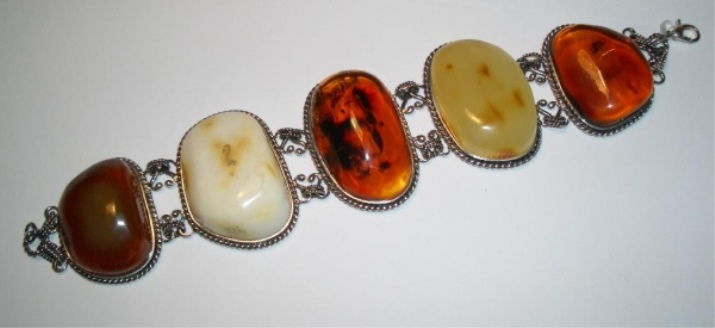 Jewelry looks very beautiful, where amber is combined with silver. These bracelets are light, fresh and incredibly airy. They may contain a small scattering of amber elements or one large stone. If you do not like silver, then the ideal solution would be to buy a gold bracelet from amber. The wonderful thing will be pleasing to the eye and perfectly complement any evening bow.