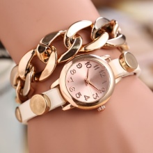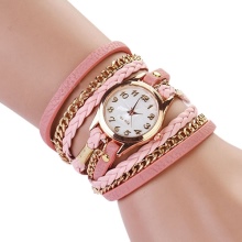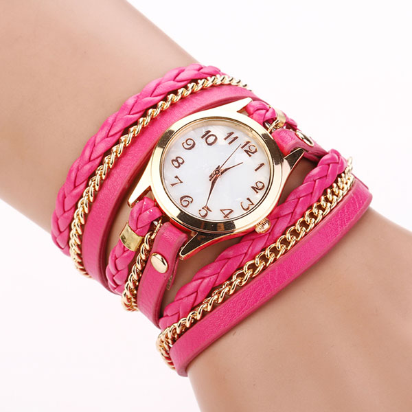 A stylish combination of gold rose gold watches and a leather bracelet made from several thin leather stripes. Tandem is made in one color. Such a union for several years does not go out of fashion.