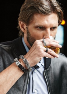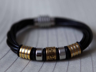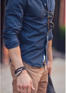 Men today are the most relevant jewelry of several leather strips, intertwined with each other. An excellent compromise is a thin braided bracelet. It will be advantageously combined with a classic work suit, and a simple T-shirt and jeans.