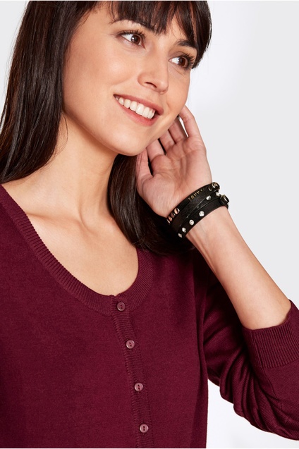 Bvlgari Trading House annually completes its collection with new designer creations. The combination of high-grade leather with discreet metal inserts allows you to wear designer jewelry every day. The color scheme is diverse. Beautifully look multi-row bracelets with elements of gold decor. This decoration will give elegance to any woman.