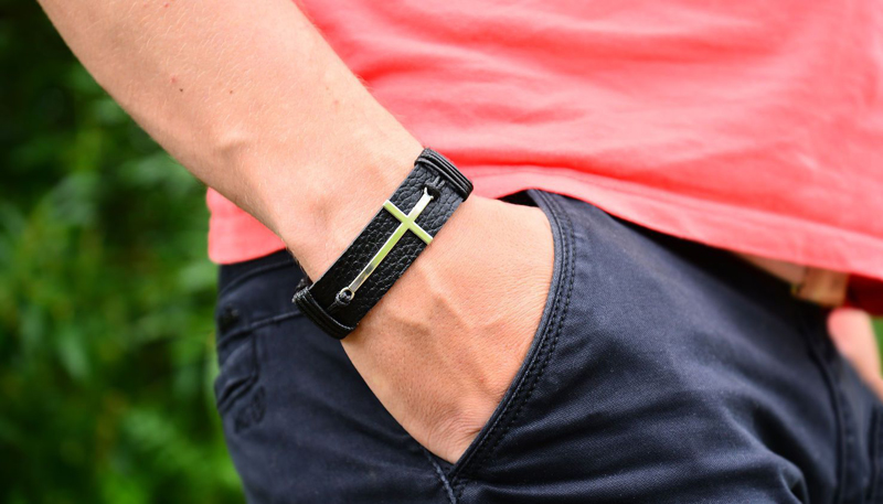 The interlaced men's leather bracelet is very versatile. Suitable for wearing every day. A perfect match with a gray shirt and classic blue jeans.