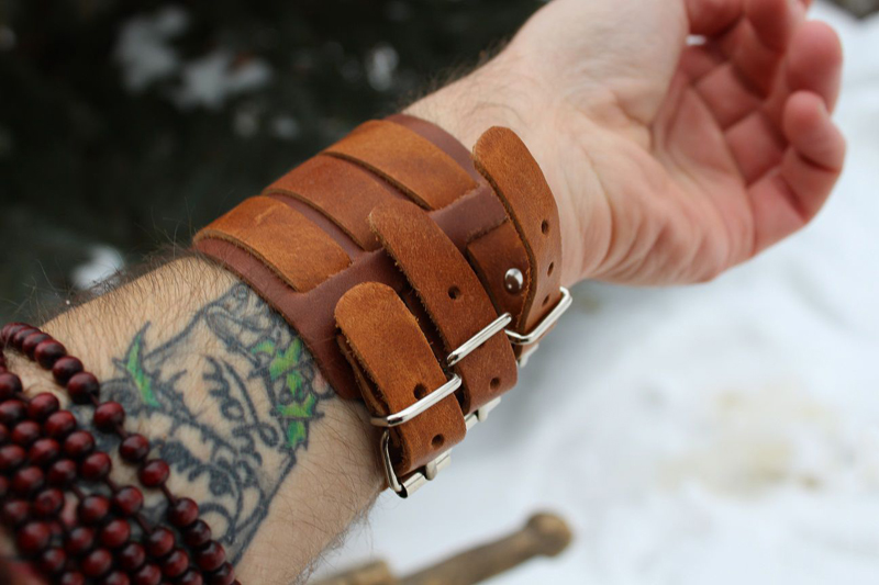 Ornaments with thorns are more suitable for informal youth. They can also be combined with images in the style of rock and military. Before buying it is better to check that the spikes on the back of the product do not injure your hand. The skin of the product should be soft and not cause rubbing.
