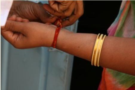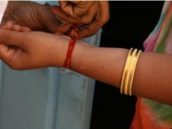 Interestingly, in India, on what hand to wear the amulet, determines the sex. Men wear it only on the right hand to protect against evil forces and for good luck. A girl with a scarlet bandage on her left hand demonstrates that she has a beloved.