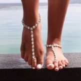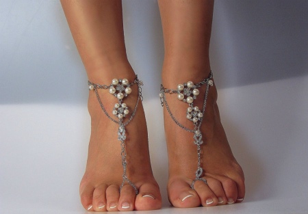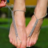 Bright jewelry called Barefoot located on the ankle and descend along the leg, ending with a charming ring on the finger. These models look very original and are great for walking on the beach or for beach parties.