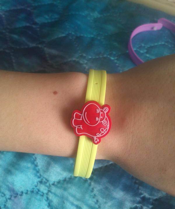 Mothercare bracelets are adjustable on the arm or leg and hardly felt because they are light. The action is not long, as on the other straps, but only 100 hours. This product has a very useful feature - water resistance. Despite the short action, the cost of this accessory is more than 500 rubles.