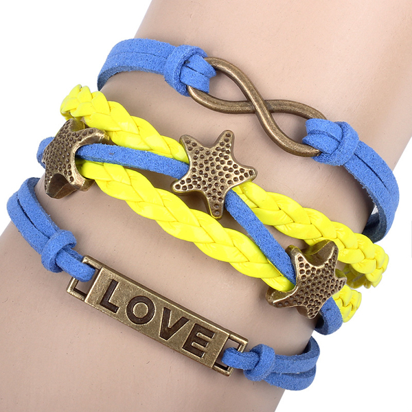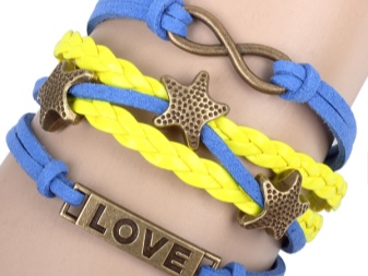 Decorative elements made of plastic with the addition of thin leather straps that twist around the front part of the bracelet look bright and extraordinary. Unusual may be the form itself. It is convenient and allows you to choose a model based on your preferences.