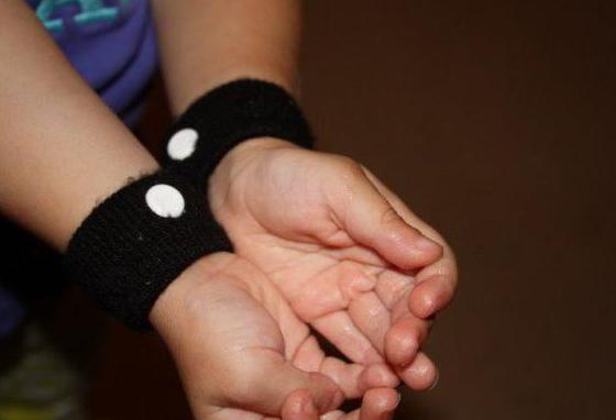 Knocking down bracelets are problematic to put on a small baby's handle. In most cases, the point of the pericardium is determined approximately, since, having pressed the fingers of an adult person, its position is shifted. It is also difficult to feel the necessary hole located between the two tendons.