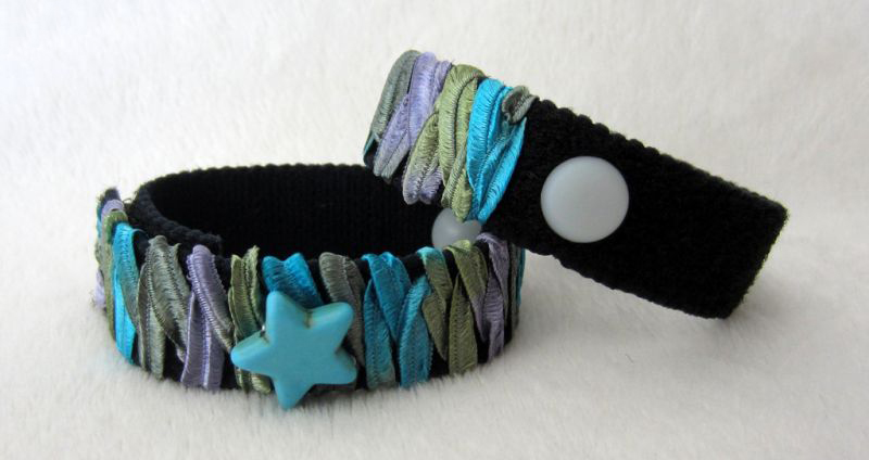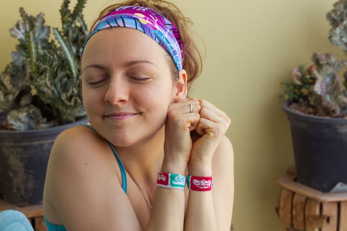Fabric bracelets are more traditional, outwardly they resemble handguards of elongated elastic hair bands of wide width. Such cuffs are more suitable for children and those with thin hands: in this case, they will not squeeze the skin.